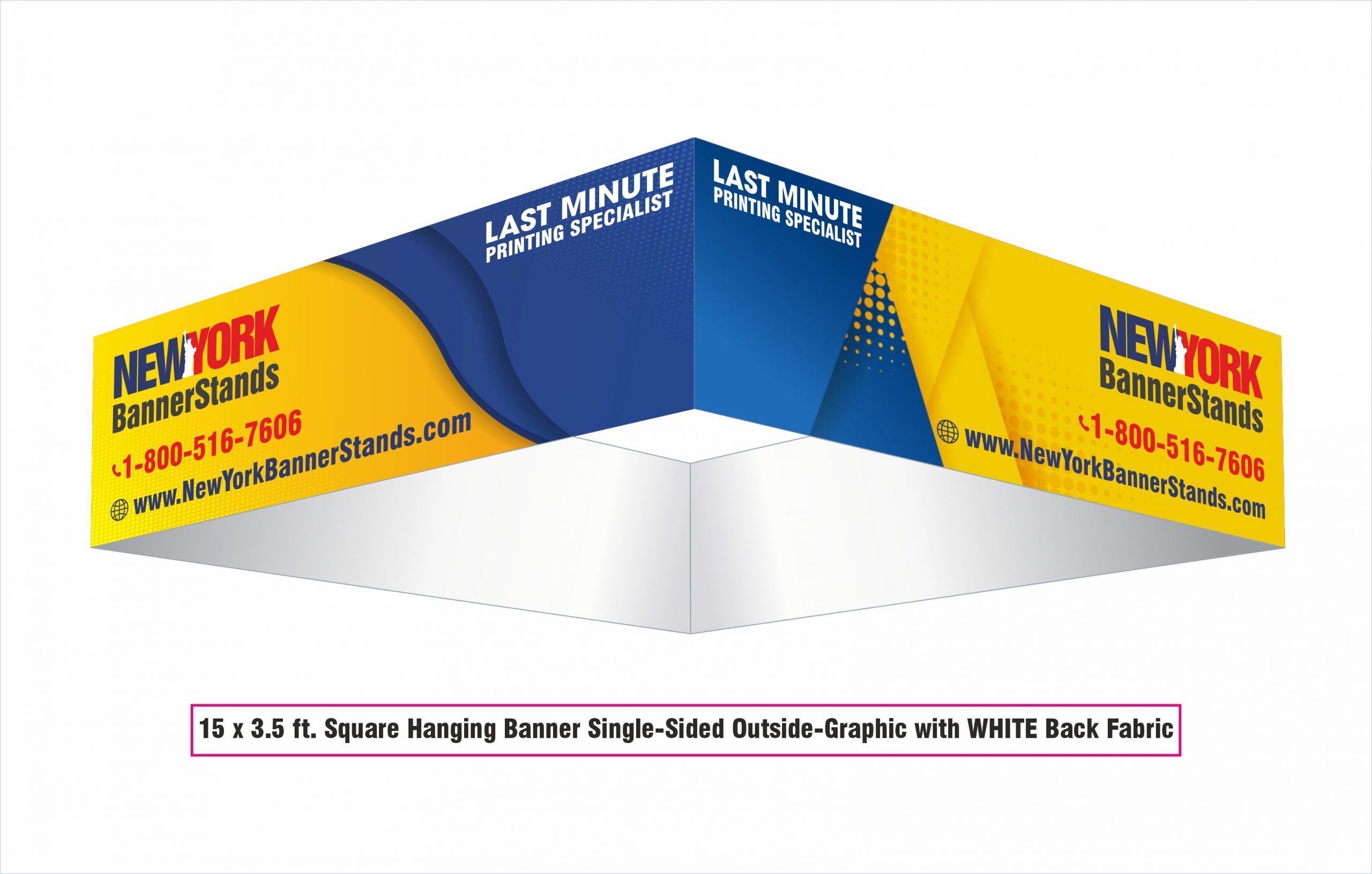 The Newyorkbannerstands Fabric Hanging Banner is a must have if you want to get noticed. These extra large hanging banners are produced from high quality fabric and enables your booth to be seen from practically anywhere at your trade show. Available in round, square, and triangle configurations as well as numerous sizes, there is a Newyorkbannerstands Hanging Banner that would suit almost any situation.
