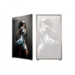 Aspen’s outside finish has a line groove, like an indented stripe, for added style, but is purposeful for easily installing accessories. This extrusion is especially lightweight making it great for wall mounting hanging overhead, but can also be stood independently with feet. Aspen frame is fit for Silicone-Edge Graphics (SEG); both sides have a trough in the frame. When installing the fabric graphic, the silicone beading can fit 12mm (0.47in.) deep and 3mm (0.11 in.) wide into the trough. Aspen has a variety of attachable lights, but cannot be backlit.