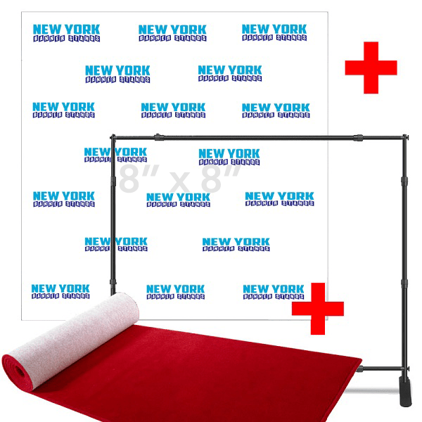 8′ x 8′ Fabric Step and Repeat Banner with Stand and 4′ x 8′ Carpet