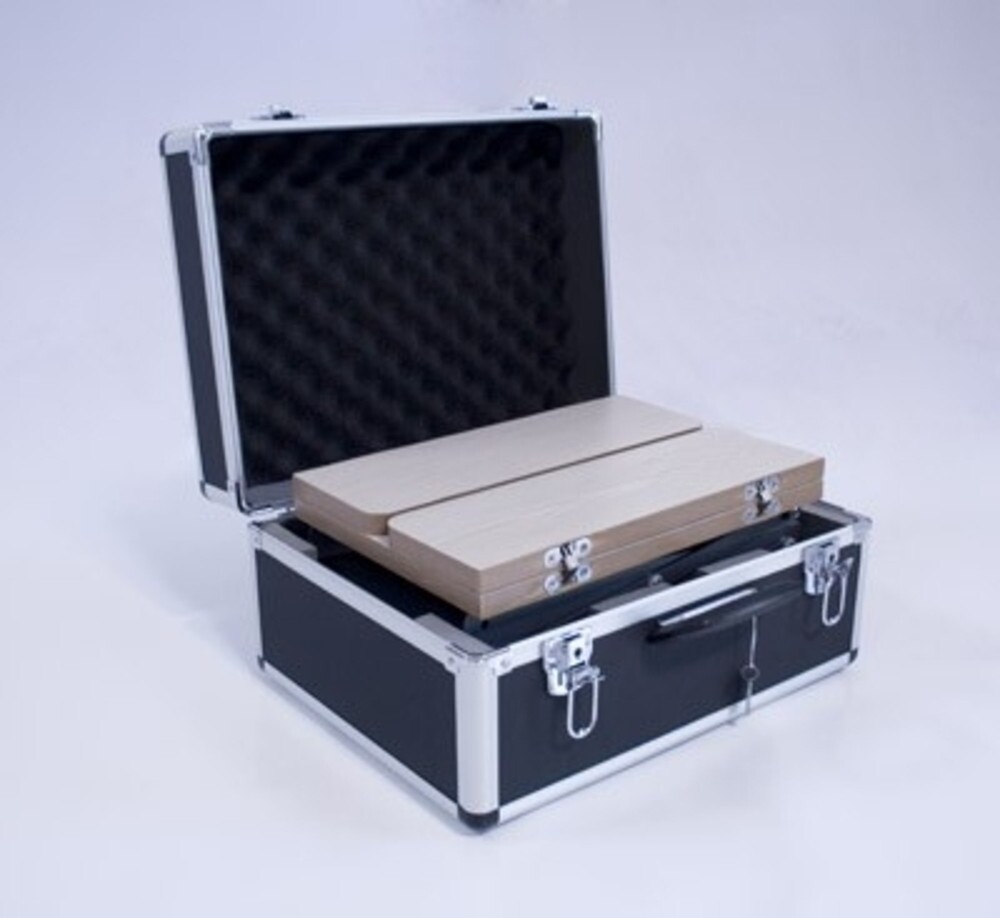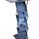In case no habla espanol, "mesa" means "table". Now you might know that the Mesa Literature Stand comes equipped with a table. Place your brochures in the holders below and your business cards and pen holder with pens on the table above. The stands unfolds like a stretched accordion. To secure, simply pull up on stand until the bottom roller drops down into place. The table folds and unfolds from the sides into the middle, on top. Compact to stow and go.