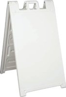 Signicade A-Frame This heavy-duty plastic A-frame is the perfect solution for sidewalk advertising. The frame can be filled with sand or water for greater stability. The double sided hardware includes regressed sign area that helps to protect sign faces. Up to two graphic prints with matte lamination are available at no additional cost. Graphic Material: - 4 mil. Permanent Adhesive Vinyl (Free)