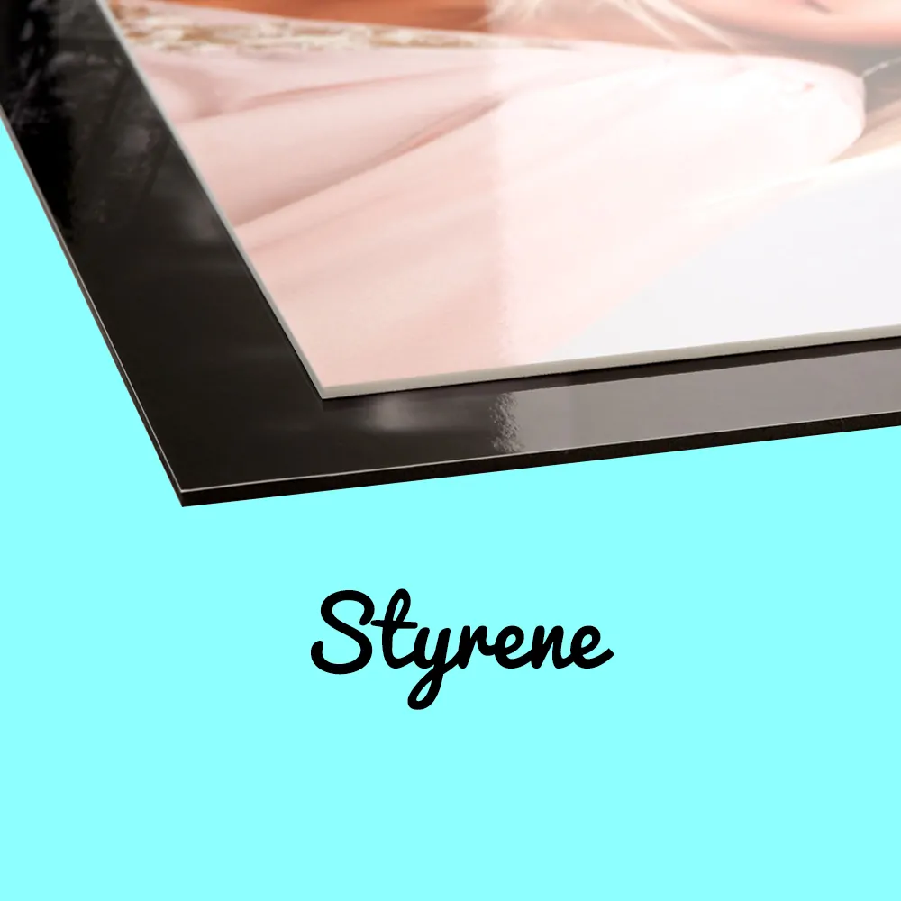 Styrene is a durable plastic board suitable for long term POP signage. We print directly on our styrene substrate. Styrene is a great solution for outdoor and indoor use, making it suitable for outdoor events, restaurants, malls, and many more.