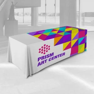 Fully customizable across the entire surface, branded tablecloths add a finished, professional look to table displays, trade show booths, and more. Available in several sizes, they are wrinkle-resistant and machine washable.