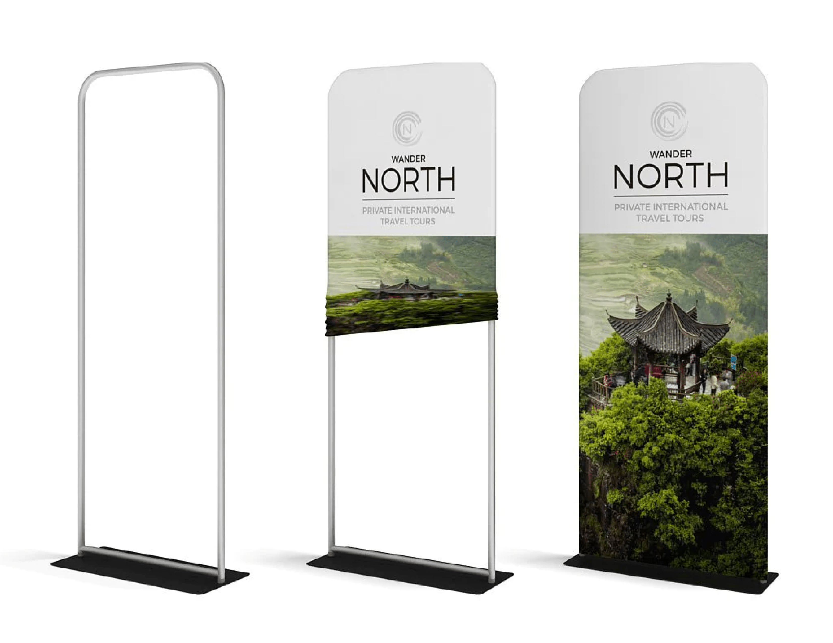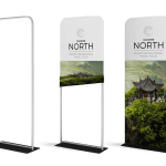 Tension Fabric Stands are the latest in indoor stand-alone advertising. The interlocking tube hardware is lightweight and built for lightning quick setups, no tools necessary! Once the hardware is in place just slip the "pillow-case" stretch fabric graphic over the frame, zip the graphic closed and set-up is complete. Graphics are full-color custom dye-sub. Add the double-sided option for twice the graphic impact.